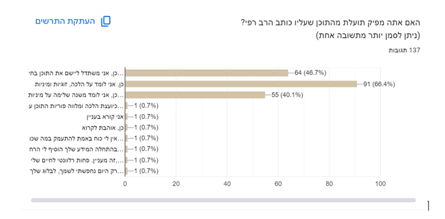להלן כמה שאלות פרטניות שקיבלתי מהסקר (השארתי את נוסח השאלה, כפי שהיא נשאלה).